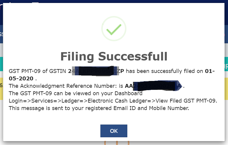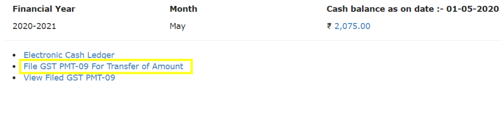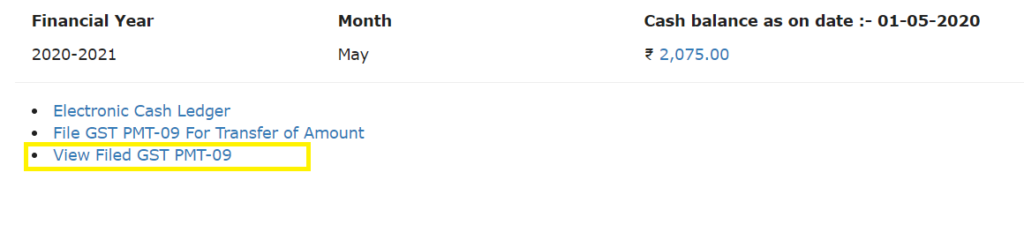 10. After successfully filing of PMT-09 , amount will get updated to cash ledger.