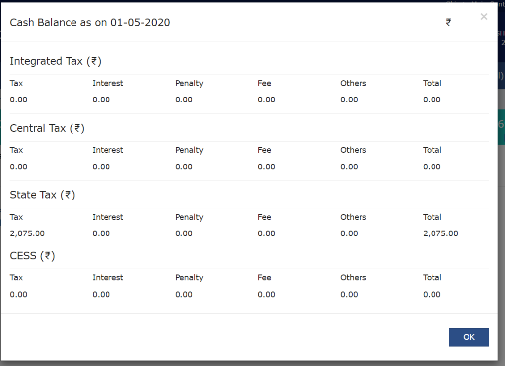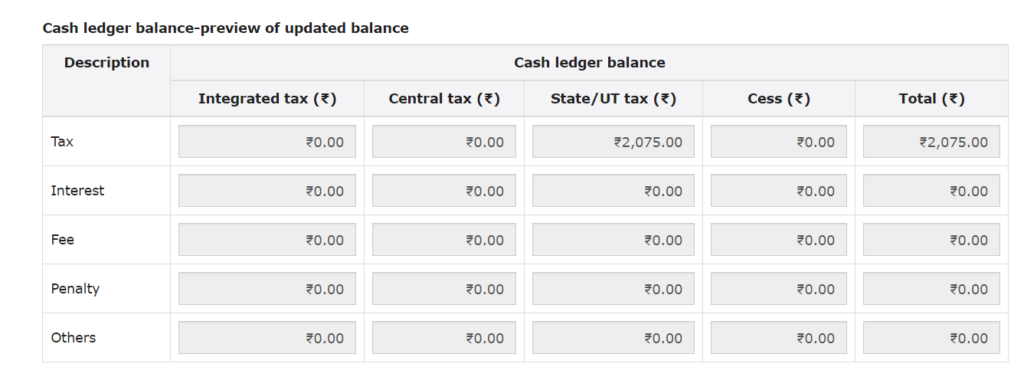 * Updated balance of Rs. 2075 is reflected in SGST under tax head.