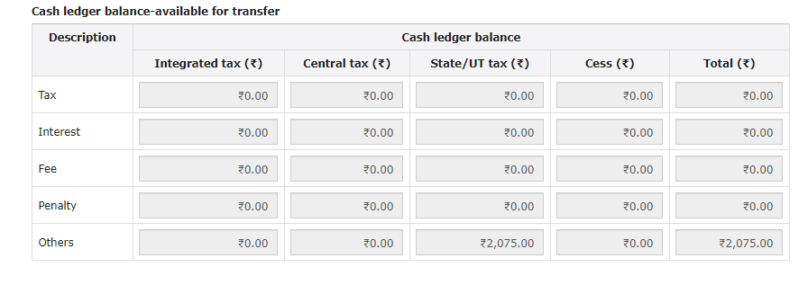 i. Please see my Cash ledger balance-available for transfer , where Rs. 2075 balance is reflected under others head.