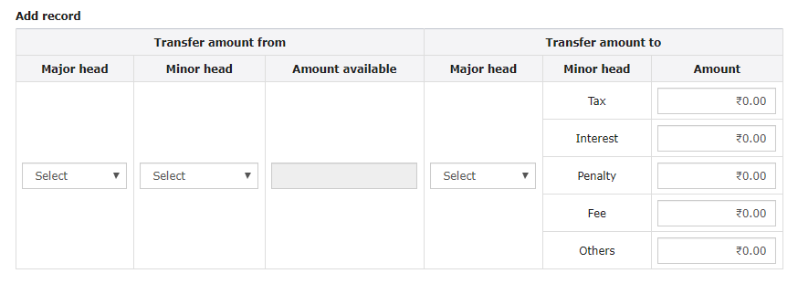 In this table, we need to enter the details of the head (Major, Minor and Amount) where we need to transfer the amount.